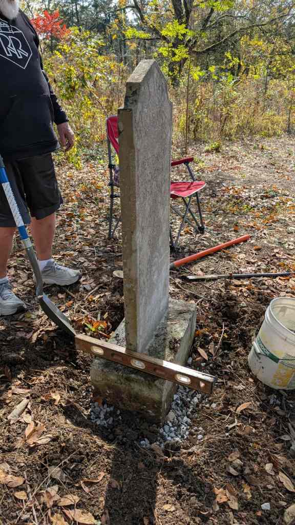We also met our limits. We found bases filled with concrete we aren’t yet confident removing safely. We saw just how much fill dirt is needed to support sunken graves before we can raise the stones. We felt where brute strength is still missing, places where we  can’t safely lift or shift what needs to move even without the fill and 2nd sent of strong hands. But for two and a half hours of work, we walked away proud. We did good.
